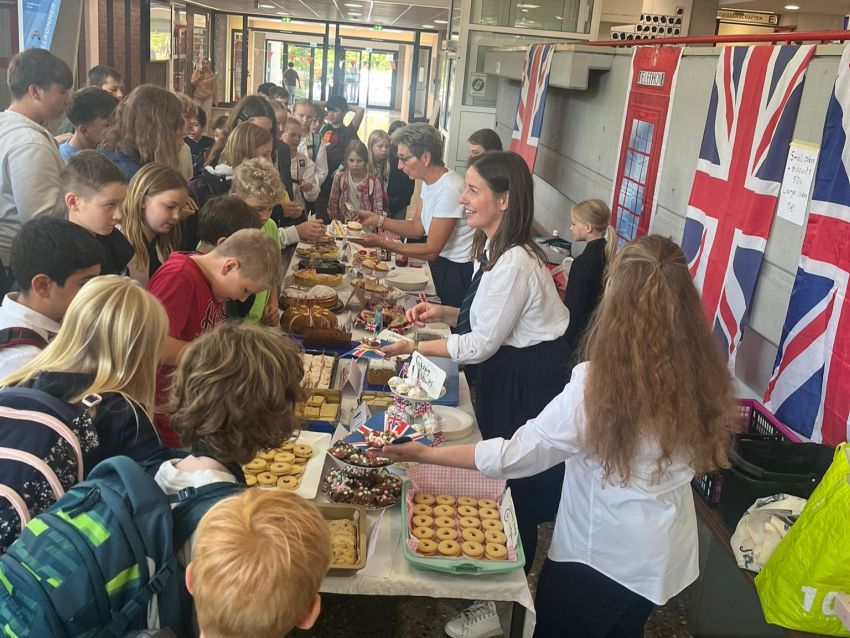 Students from year 5 to 11 enjoyed a range of activities from 17th to 19th September 2025 from baking British cakes to creating unique art pieces with a British touch! Organisors, Wendy Sherman, Karen Roine and Natalie Evans, all British, enjoyed lots of lovely moments with their motivated students. English was spoken at every occasion! Well done everyone! On Friday lots of students came to school in school uniform. Even some of the school staff got in the spirit and impressed all with their very smart attire. In the second breaktime it only took 15 minutes to sell all the lovely cakes which both parents and students had made especially for the occasion. We look forward to the next time!