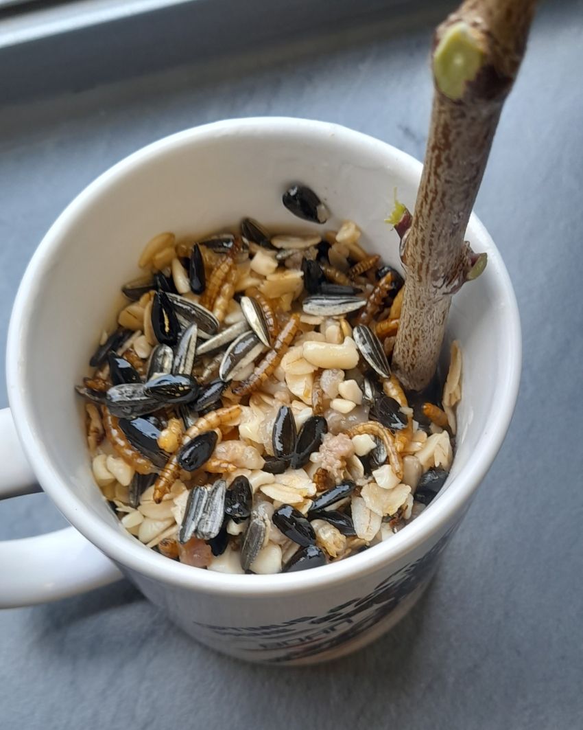 Passend zur kalten Jahreszeit hat die Garten-AG am Dienstag während der AG-Stunden Tassen mit selbst gemischtem Vogelfutter zum Aufhängen befüllt. Es roch schon etwas ungewohnt im Chemieraum, als das Tierfett auf den Wärmeplatten geschmolzen wurde. Dann mischten die Einsteiner Haferflocken, Sonnenblumenkerne, Mehlwürmer, Erdnuss- und Wallnuskerne in das flüssige Fett. In Tassen abgefüllt und jeweils eine Sitzwarte hineingesteckt stehen die Futterglocken nun zum Abkühlen in der Biosammlung und können dann, wenn das Fett ausgehärtet ist, aufgehängt werden. Hoffentlich lassen sich an den Glocken dann verschiedene Meisenarten (Blau-, Kohl-, Tannen-, Schwanz- Hauben-und Sumpfmeisen) oder auch Finken und Gimpel beobachten. Wir wünschen jedenfalls guten Appetit.