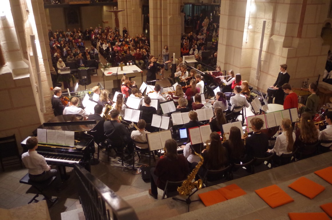 Von den Jüngsten der Bläserklasse 6B bis hin zu den Ensembles mit Schülerinnen und Schülern der Oberstufe musizierten rund 130 Kinder und Jugendliche in einem zweistündigen Konzert im hamelner Münster auf beachtlichem Niveau: Der große Chor sorgte mit den zwei Stücken „Star Carol“ (John Rutter) und „A Million Dreams“ für magische Momente, das Blechbläserensemble begeisterte unter anderem mit dem großen „Hallelujah“ von Händel, das „Junge Orchester“ brillierte mit „Air for Band“ und „Rudolph, the red nosed Reindeer“, die Bigband präsentierte zwei Arrangements von Paul Clark, die Weihnachslieder verarbeiten, der „Heart“-Chor zog das Publikum mit „Who will be a Witness?“ und „Breath of heaven“ in seinen Bann - und das Orchester überzeugte mit dem Stücken „Let the bells ring“ und „Yellow“ von Coldplay auf ganzer Linie, um nur einige Beiträge zu erwähnen. Unter der Leitung von Alexander Simko bereicherte das Wir4Quartett der Wilhelm Homeyer Musikschule, dem langjährigen Partner des AEGs, auf beeindruckende Weise mit dem Stück „Rose Cottage“ für vier Querflöten das Konzert. Erstmals wurde mit Gesangssolistinnen und Gesangssolisten, Chor und Orchester eine kleine Schulkonzert-Kantate, die die biblische Weihnachtsgeschichte musikalisch erzählte, aufgeführt.