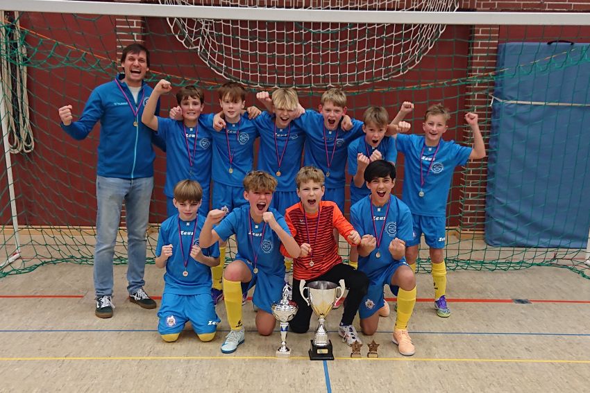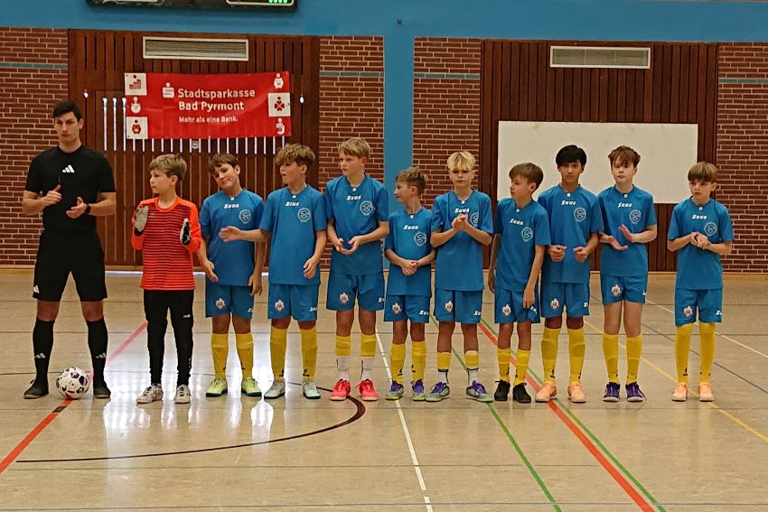 Die Einsteiner (Jahrgang 2013 und jünger) kehrten am Donnerstag, dem 11.12.2025, mit einem hochverdienten Turniersieg erfolgreich vom Fußball-Turnier „S-Indoor-Cup“ in Bad Pyrmont zurück. Die Mannschaft präsentierte sich in allen Spielen unglaublich diszipliniert und torhungrig. Schon den Start in die Vorrunde hätte man sich nicht besser wünschen können. Mit einem 7:1 wurde die IGS-West vom Platz gefegt (Tore: Elyas Jabari (2), Hannes Stapel (2), Lukas Bender (1), Mats Thiele (1) und Luca Schmoll (1)). Im zweiten Spiel wurde dann auch die zweite Mannschaft vom Humboldt-Gymnasium mit 3:0 geschlagen, hier erzielte Max Söhlke ein traumhaftes Freistoßtor mit seinem linken Hammer. Weitere Torschützen waren Elyas Jabari und Simon Schaefer. Damit war die Qualifikation für das Halbfinale schon sicher. Im letzten Spiel gegen die KGS Salzhemmendorf ging es nur noch um den Gruppensieg. Hier war die Mannschaft vom AEG auch klar spielbestimmend und führte lange mit 2:0 und 3:1. In den letzten Minuten mussten die Einsteiner allerdings zwei einfache Gegentreffer hinnehmen und so endete das Spiel 3:3 (Tore: Elyas (2), Luca (1)). Trotzdem reichte das Unentschieden zum Gruppensieg.