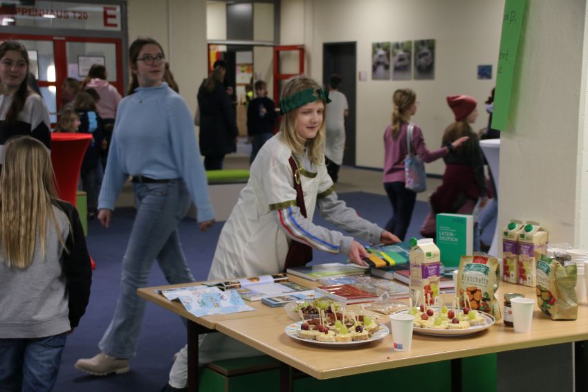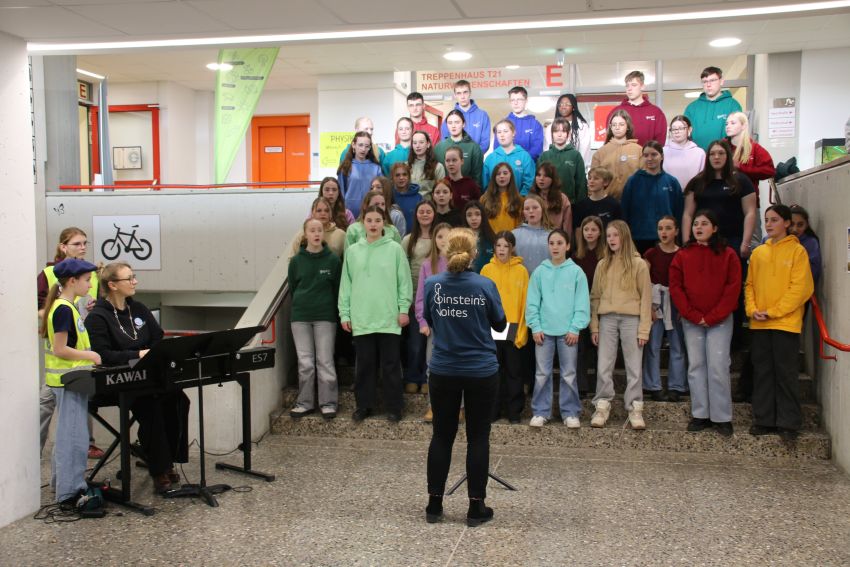 Am 19.2. öffnete unsere Schulgemeinschaft die Türen für Schülerinnen und Schüler des zukünftigen 5. Jahrgangs, damit diese etwas AEG-Luft schnuppern und sich über unsere Schule informieren konnten, denn Anfang Mai haben sie die Qual der Wahl, sich für eine weiterführende Schule nach vier Jahren Grundschulzeit zu entscheiden. Es gab vielfältige Mitmachangebote in den Naturwissenschaften, den Sprachen, in Geschichte, bilingual Erdkunde und den musisch-künstlerischen Fächern sowie einen Parcours in der frisch sanierten Turnhalle am Einsiedlerbach. Aber nicht nur die einzelnen Fächer präsentierten sich, sondern auch Arbeitsgemeinschaften wie die Zirkus-AG, das Orchester und die Bigband, die ihr Können bereits in der Eröffnungsveranstaltung in der Aula unter Beweis stellten. Schulsanitäter, der Schulgarten, die Europa- und die Vertikaltuch-AG zeigten ebenfalls Einblicke in ihre Arbeit. Für das leibliche Wohl sorgte der 12. Jahrgang mit Bratwürstchen und Crêpes, die aber auch von Französischkursen in der unteren Pausenhalle gebacken wurden, sodass der herrliche Duft überall durch das Gebäude zog. Der Tag war sehr gut besucht und von allen Seiten erfuhren unsere Schule sehr viel Wertschätzung für die Arbeit, die alle Einsteiner dort täglich leisten. Ein großer Dank gilt von Herzen allen, die zum Gelingen dieses Tags beigetragen haben, die Crêpesteig gespendet, Würstchen gegrillt, die Schülerversuche und Stände betreut, Musikinstrumente vorgestellt, die Garderobe organisiert und die bei den Vorführungen mitgewirkt haben. Ohne dieses Engagement wäre unsere Schule nicht was sie ist!