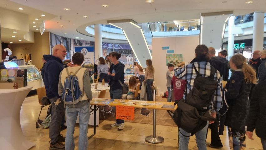 Dieser Tag hat wieder gezeigt, was alles möglich ist, wenn sich engagierte Menschen zusammensetzen und ihre Ideen umsetzen. Wir danken allen großen und kleinen Einsteinern, den Familien und Biberschützern, die dazu beigetragen haben, dass der Biberaktionstag so gut gelungen ist und so viel Spaß gemacht hat. Ein großer Dank geht natürlich auch an das Center-Management der Stadt-Galerie für die Bereitstellung des Mobiliars und der Preise für das Biberquiz.