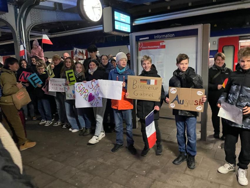 Welch ein Gewusel am Hamelner Bahnhof als auf Gleis 3 um 17 Uhr 10 pünktlich die S5 aus Hannover einfährt: 19 Einsteiner aus dem 8. Jahrgang empfingen mit ihren Familien die Gäste von unserer Partnerschule aus der französischen Hauptstadt mit bunt gestalteten Schildern und jeweils einem französischen Vornamen, Frankreichflaggen und dem Schriftzug BIENVENUE. Die Schülerinnen und Schüler vom collège Fénelon bleiben nun zehn Tage bei uns am AEG und tauchen ein in das deutsche Familienleben und den deutschen Schulalltag. Natürlich stehen neben vielen Ausflügen nach Hannover und Bremen auch gemeinsame Aktivitäten wie Bowling, der Besuch des Adventskonzert am 12.12. und Schlittschuhlaufen in Lauenau auf dem Programm. Des Weiteren besuchen die Jugendlichen an zwei Tagen auch den Schulunterricht. Wir wünschen allen eine ereignisreiche und aufregende Zeit in der Rattenfängerstadt und hoffen, dass ganz viele dann im nächsten Schuljahr wiederkommen und sich der Herausforderung des vierwöchigen Austausches stellen. Es ist immer wieder schön, wenn wir Gäste am AEG haben, die unseren Schulalltag bunter machen und wir alle gemeinsam zu einem besseren Verständnis des anderen beitragen können.
